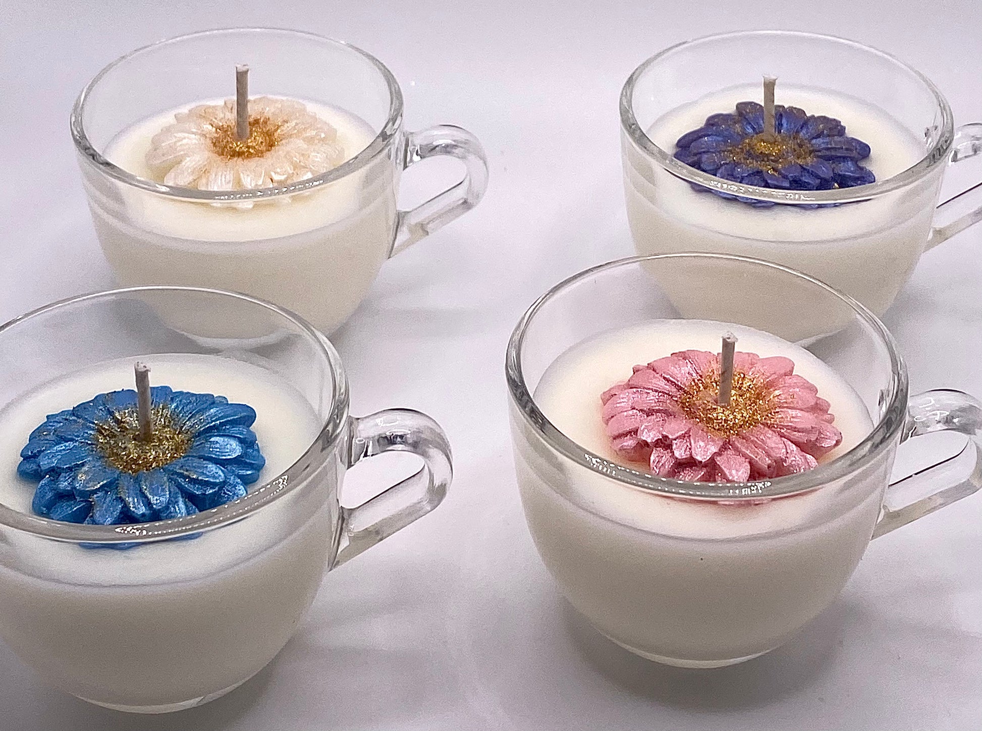 Different Color Options: White, Blue, Purple and Pink Daisy